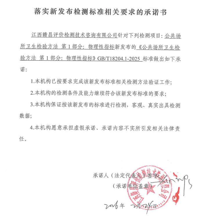 关于落实新发布检测标准(照明测量方法)相关要求承诺书
