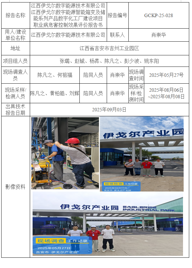 江西伊戈尔数字能源技术有限公司 江西伊戈尔数字能源智能箱变及储能系列产品数字化工厂建设项目 职业病危害控制效果评价报告书