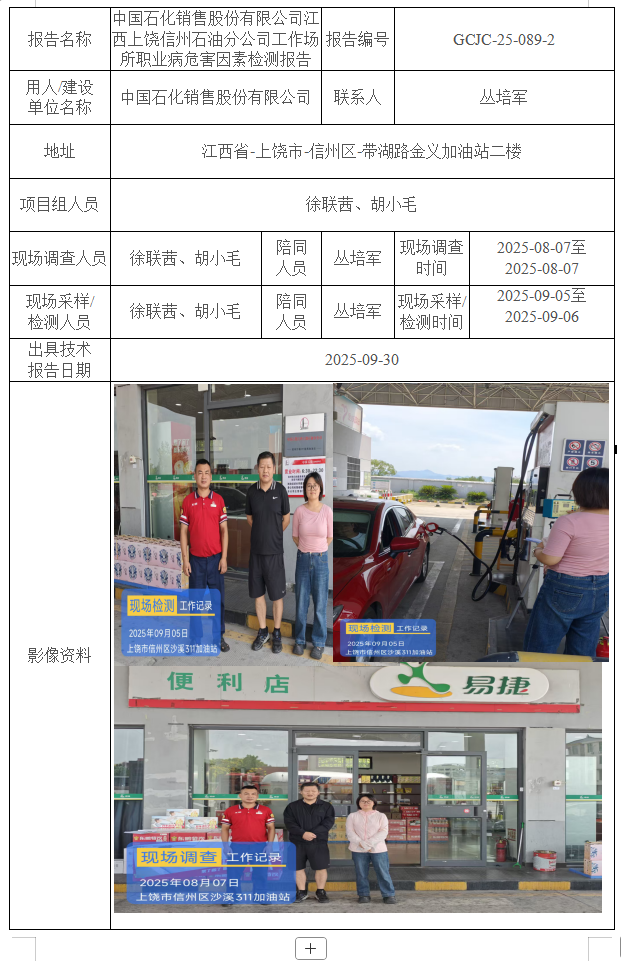 中国石化销售股份有限公司江西上饶广信石油分公司工作场所职业病危害因素检测报告