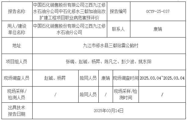 下一篇:中国石化销售股份有限公司江西九江石油分公司湖口大垅加油站新建项目职业病危害预评价