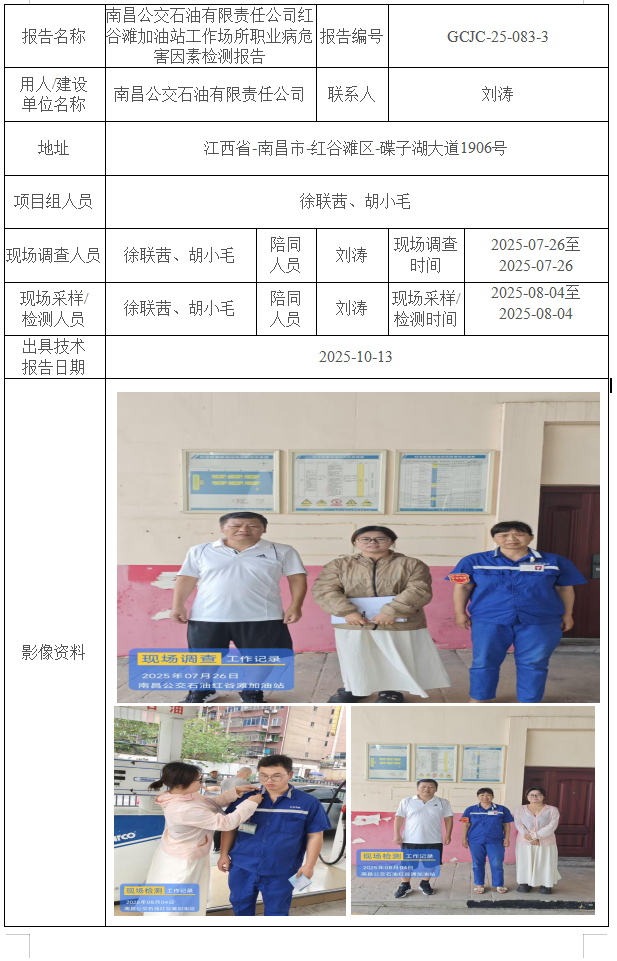 南昌公交石油有限责任公司红谷滩加油站工作场所职业病危害因素检测报告
