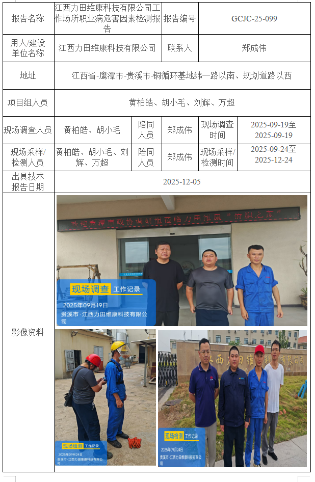 江西力田维康科技有限公司工作场所职业病危害因素检测报告
