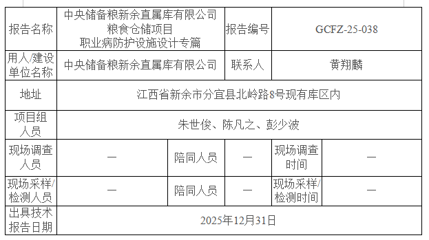 中央储备粮新余直属库有限公司粮食仓储项目职业病危害预评价报告