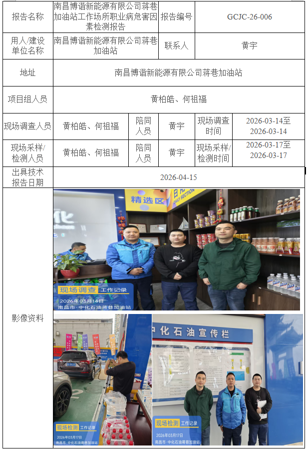 南昌博谐新能源有限公司蒋巷加油站工作场所职业病危害因素检测报告