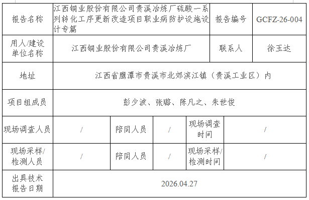江西铜业股份有限公司贵溪冶炼厂硫酸一系列转化工序更新改造项目职业病防护设施设计专篇