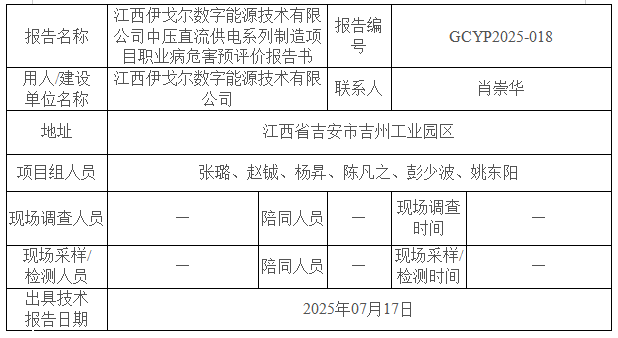 下一篇:江西伊戈尔数字能源技术有限公司江西伊戈尔数字能源智能箱变及储能系列产品数字化工厂建设项目职业病危害预评价报告书
