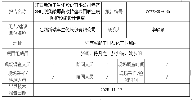 江西新瑞丰生化股份有限公司年产38吨脱落酸原药改扩建项目职业病防护设施设计专篇