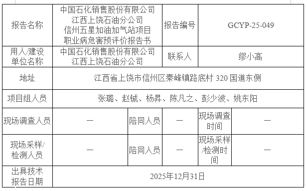 中国石化销售股份有限公司江西上饶石油分公司信州五星加油加气站项目职业病危害预评价报告书