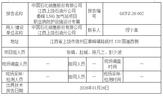 中国石化销售股份有限公司江西上饶石油分公司秦峰LNG加气站项目职业病防护设施设计专篇