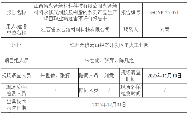 下一篇:江西省永合新材料科技有限公司永合新材料永修光刻胶及树脂的系列产品生产项目职业病防护设施设计专篇